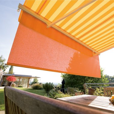 Sie bietet Sonnenschutz bei kleinstem Platzbedarf. Dies wird, im Gegensatz zu herkömmlichen Gelenkarm-