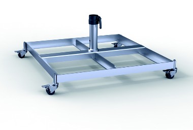mit gummierten Schwerlastrollen und Feststellbremse, Rahmengröße 84 x 91 cm, Gesamthöhe 40 cm, Gewicht ca. 24 kg, feuerverzinkt. Passend für handelübliche Betonplatten 40 x 40 x 5 cm