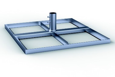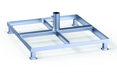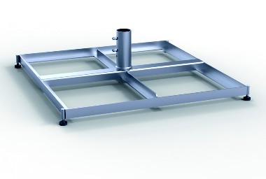 Gesamthöhe wird auftragsbezogen ebenerdig zum Terrassenboden festgelegt, für Schirme ab 21m², wird vor Ort zusammengeschraubt, Gewicht 277 kg, Oberteil abschraubbar, Grundplatte 145 x 145 cm, inkl. Abdeckscheibe für Winterabdeckung.