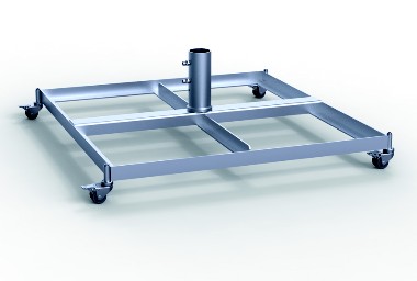 mit gummierten Schwerlastrollen und Feststellbremse, Rahmengröße 103 x 111 cm, Gesamthöhe 36 cm, Gewicht ca. 31 kg, feuerverzinkt. Passend für handelübliche Betonplatten 50 x 50 x 5 cm